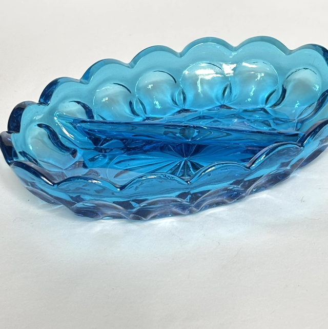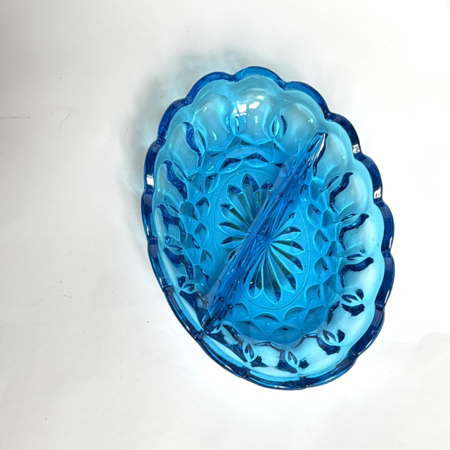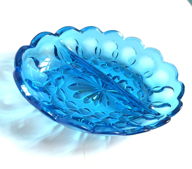 Türkisfarbene unterteilte Glas - Schale Vintage
