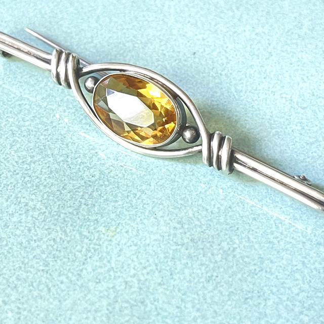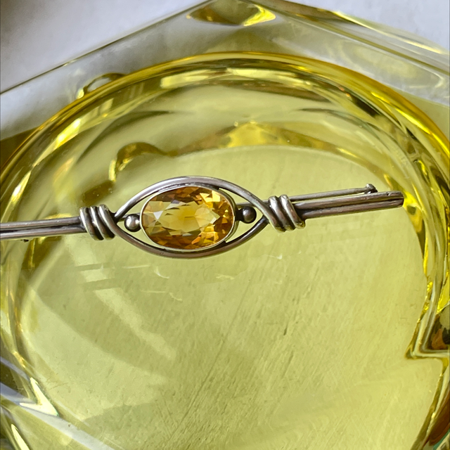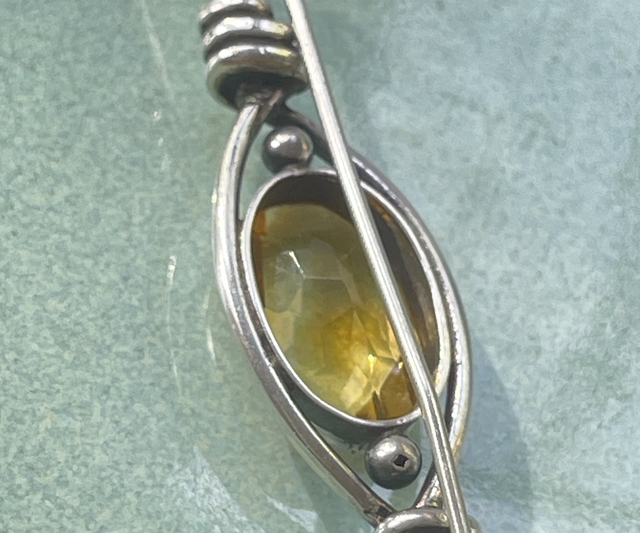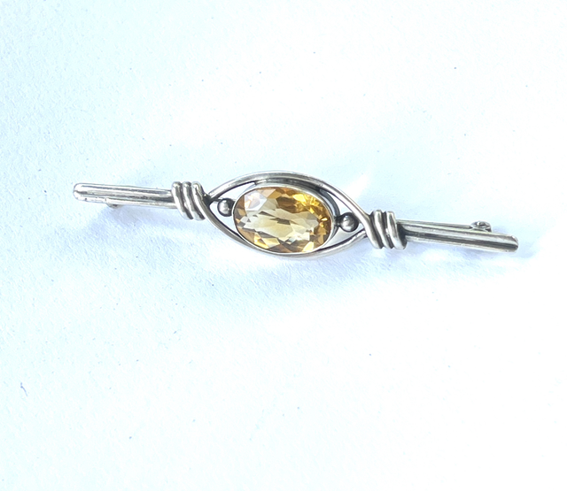 Citrin Brosche / Anstecknadel / Edelstein/ Silber / Antik