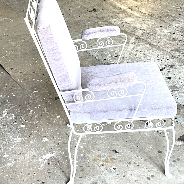 Antiker Gartenstuhl / Armlehnstuhl / weisser Metallstuhl