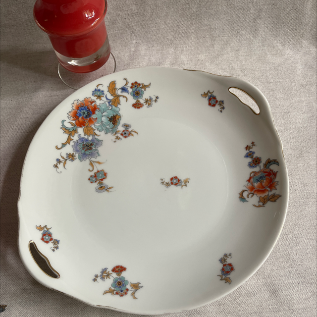 Teller aus Porzellan, antiker Blumenteller / Vintage Teller mit Griffen von Thomas / Bavaria 2/ 3631