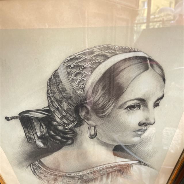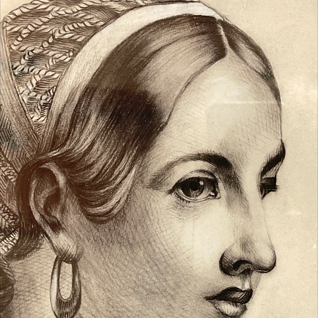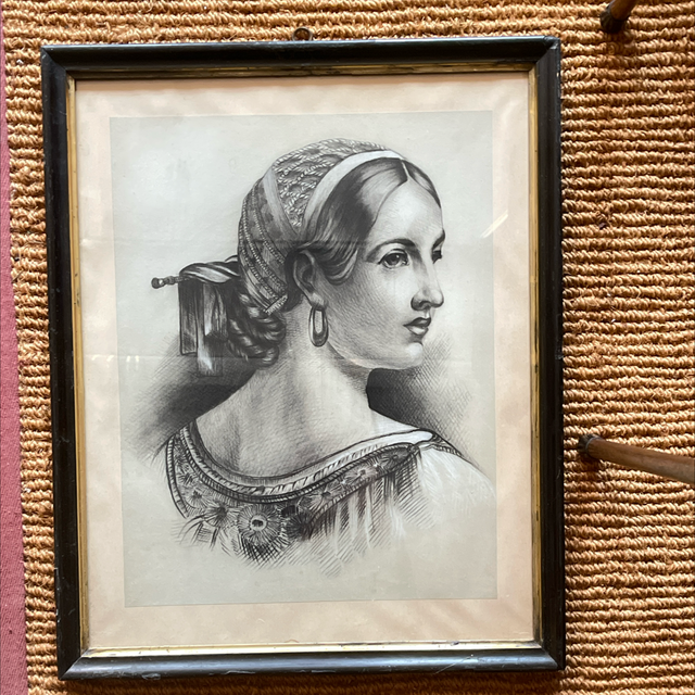 Kunstwerk Zeichnung Frauenportrait ca. 1780 antik B: 42 cm, H: 53 cm unsigniert