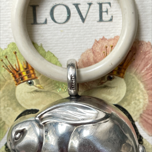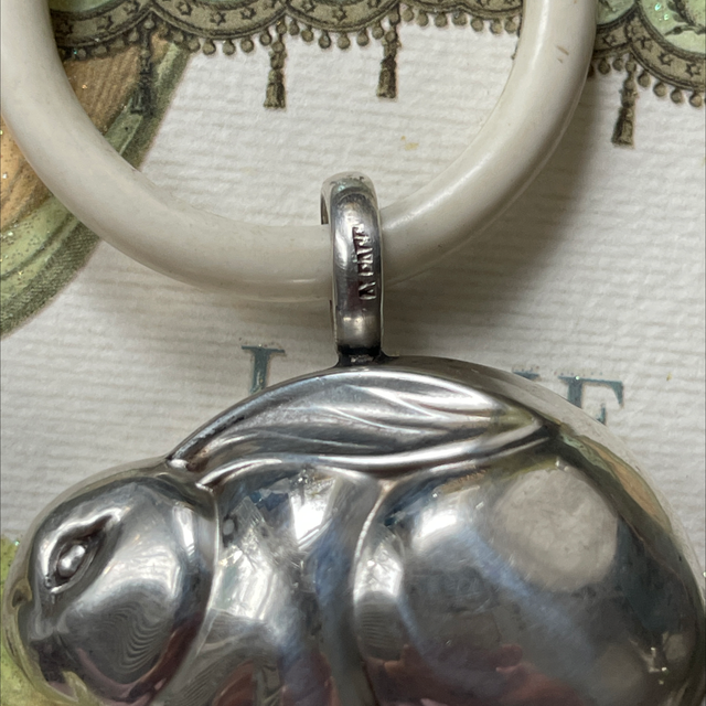Antikes Taufgeschenk silber Hase Beissring Rassel
