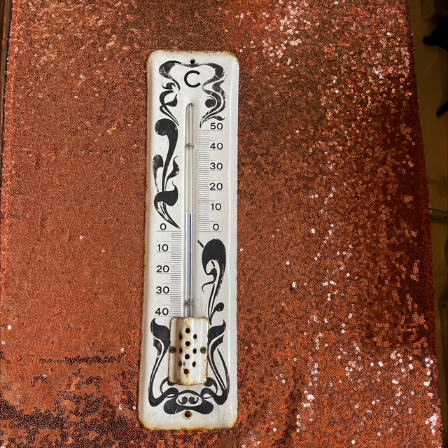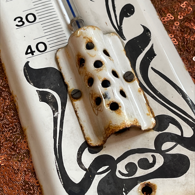 Antikes Thermometer Emailliertes Blech bemalt