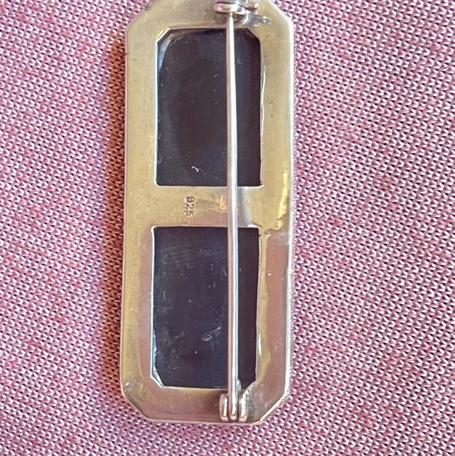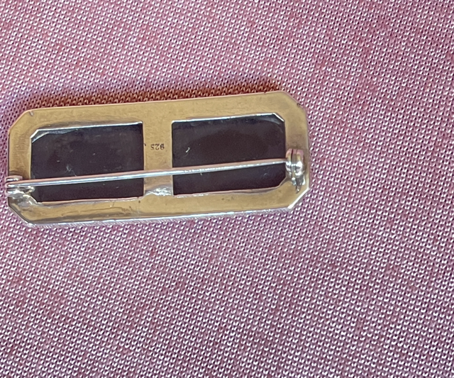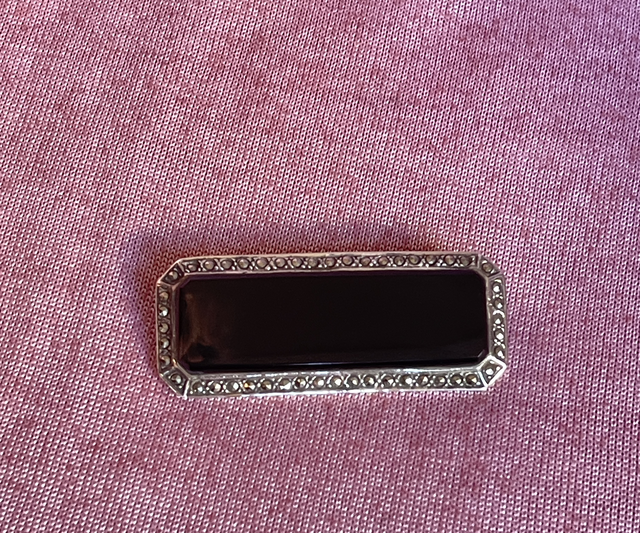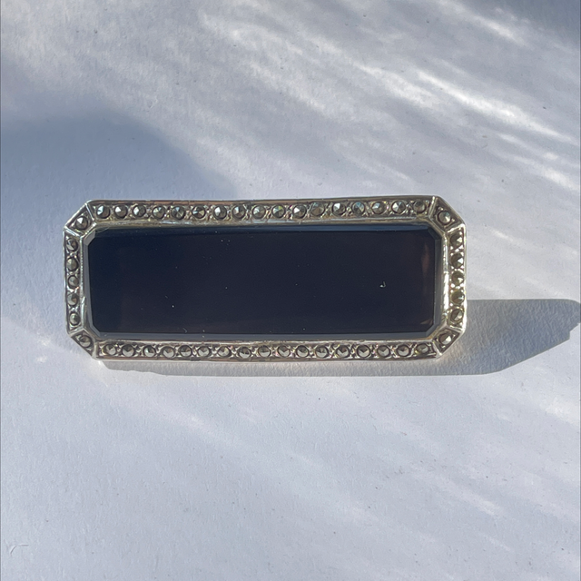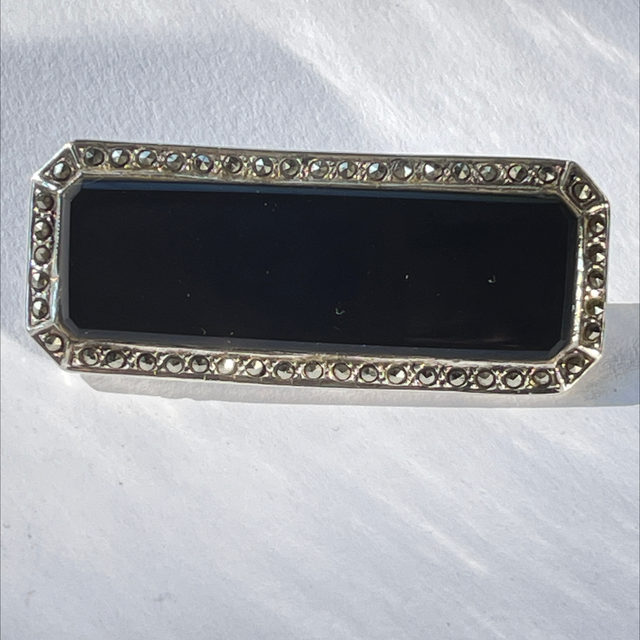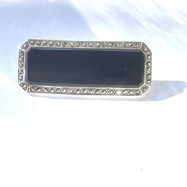 Art Déco Brosche Onyx Markasiten Pyrit