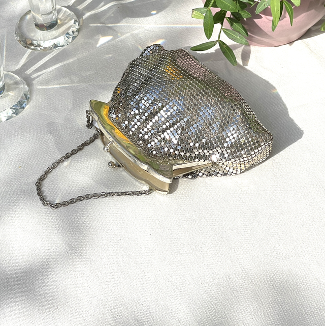 Art Déco Tasche von Whiting & Davis USA silber Pailetten Abendtasche