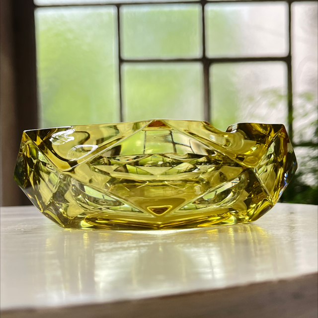 Gelber Glasaschenbecher B: 14 cm , H: 5 cm