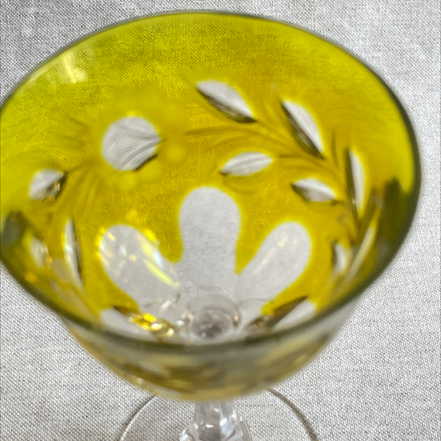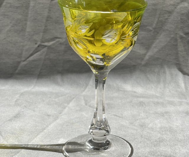 Bohemian Glas geschliffen grün #Römerglas #Weinglas # Überfangglas
