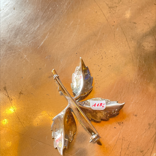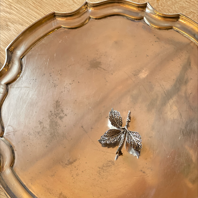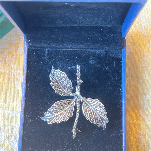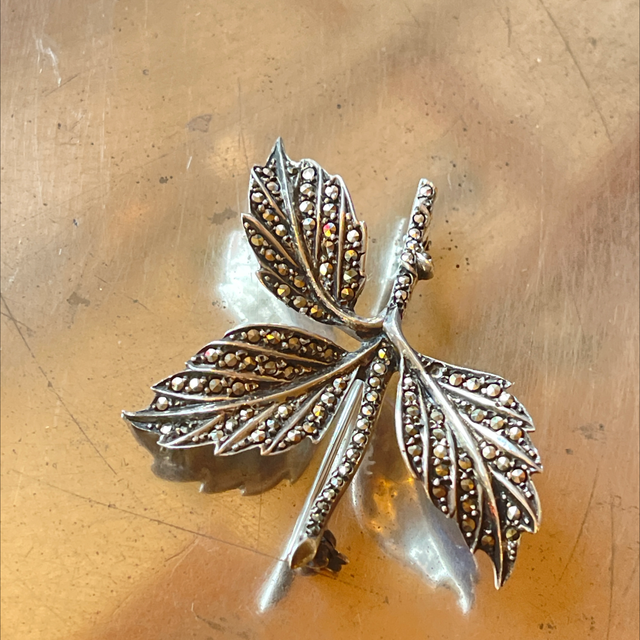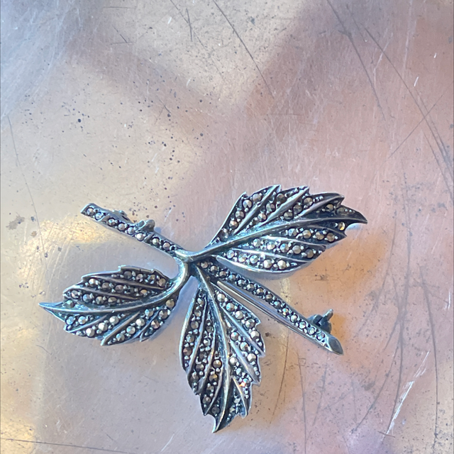 Brosche Blatt Markasiten 835er Silber