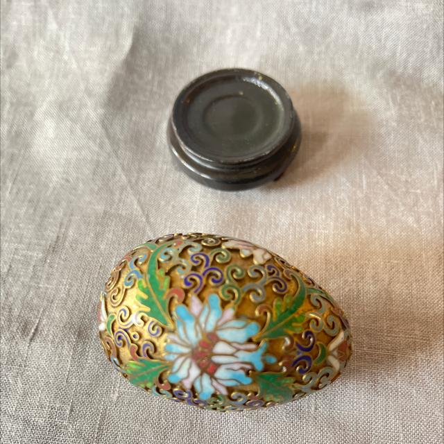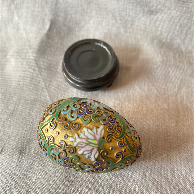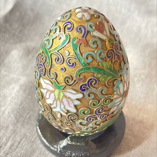 Cloisonné Ei auf Holzständer Vintage