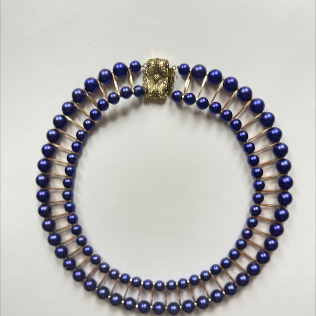 Doppelreihiges Mid-Century Collier in Azur blau
