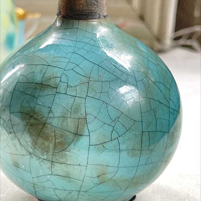 Craquelle Vase bauchig mit dünnem Hals. Solifleur Vase