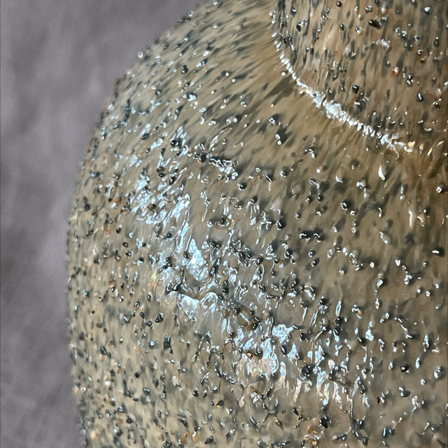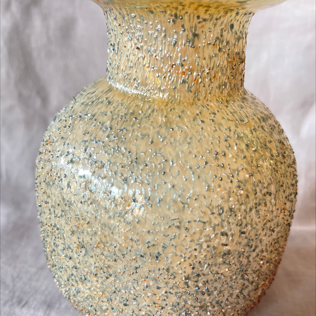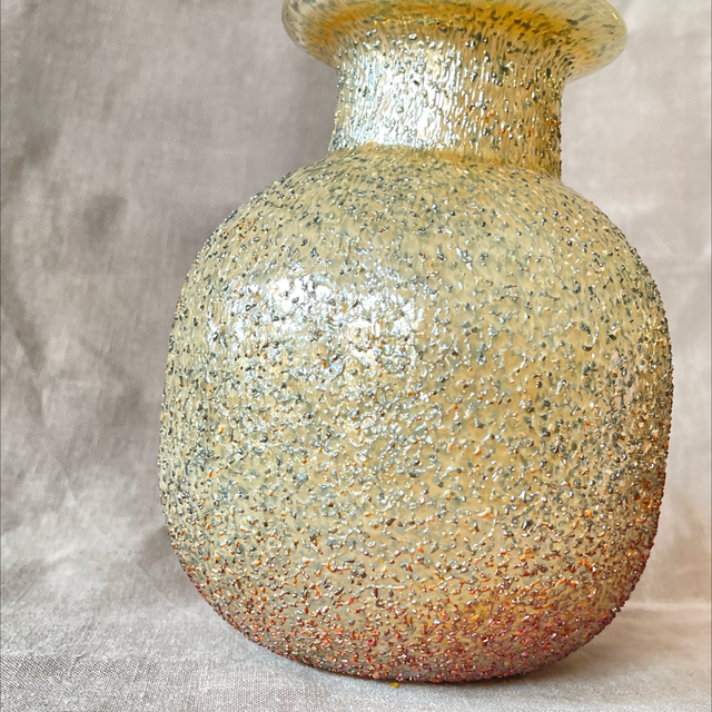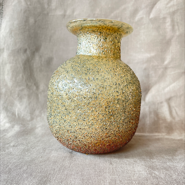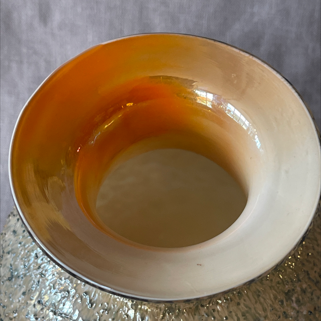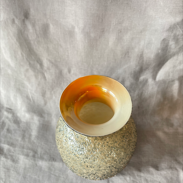 Glasart Glaskunst Überfang Vase leuchtend gelborange mit beige grauer Ummantelung