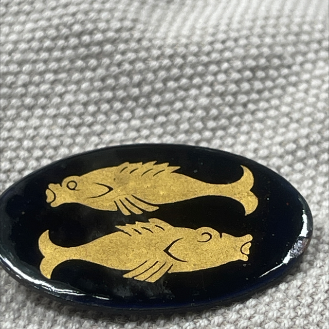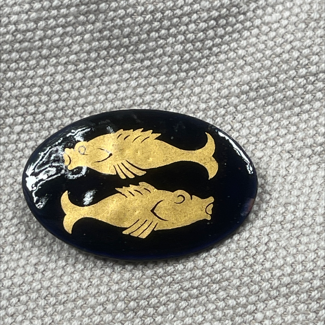 Schwarz/ goldene Fische Brosche Sternzeichen Emaille