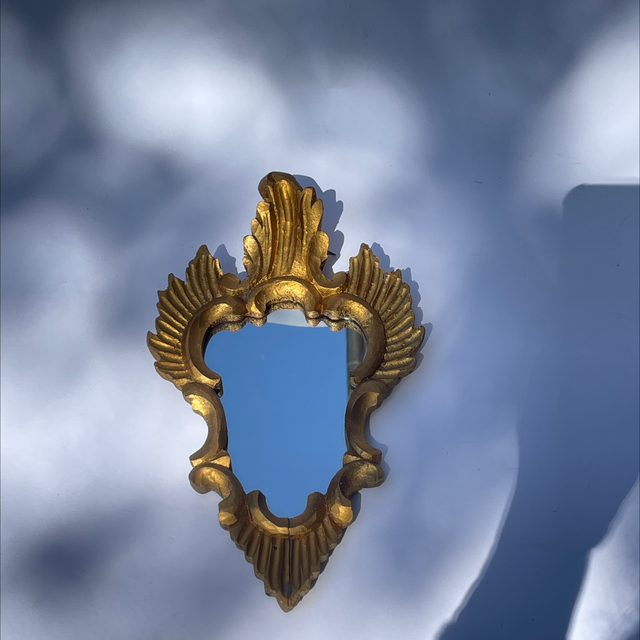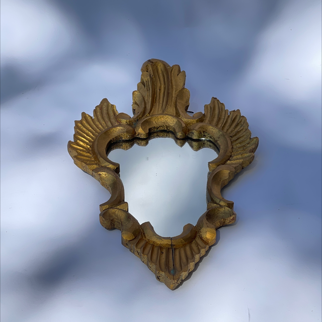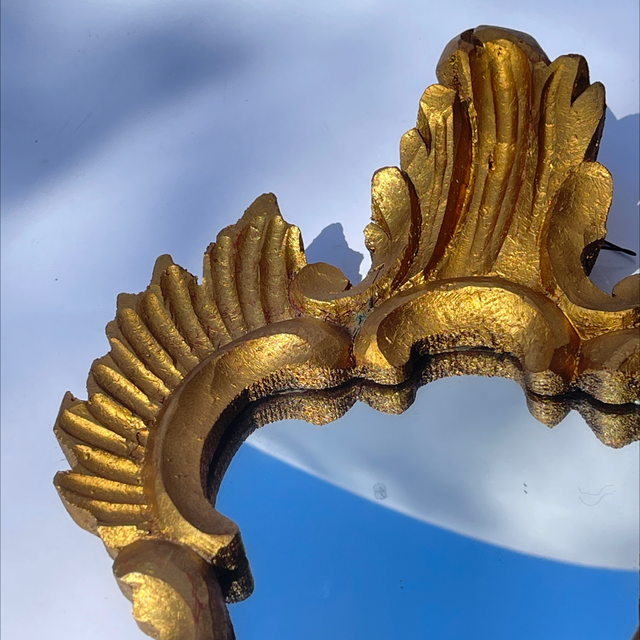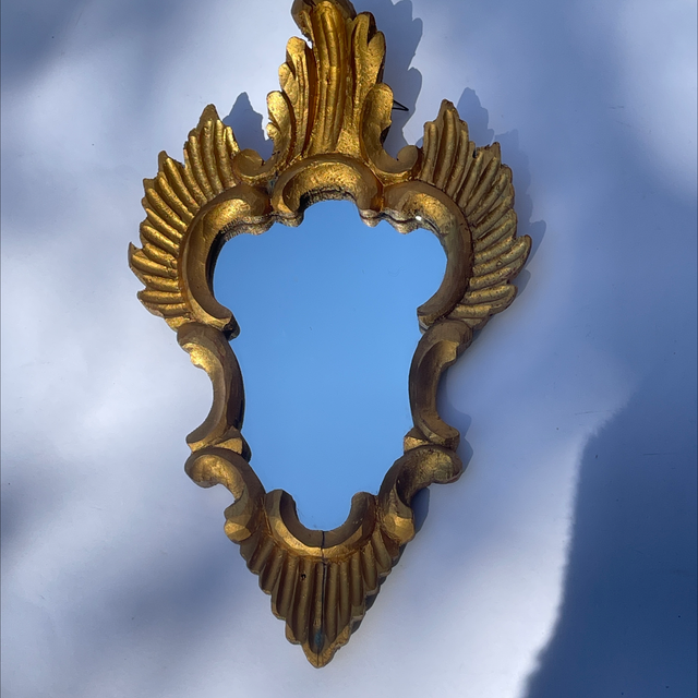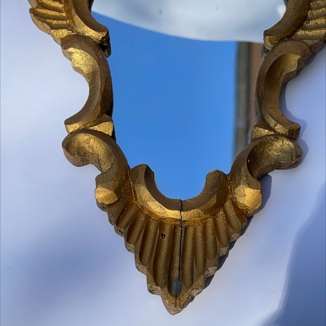 Florentiner , kunstvoll gearbeiteter Spiegel aus Holz und vergoldet und gefasst.