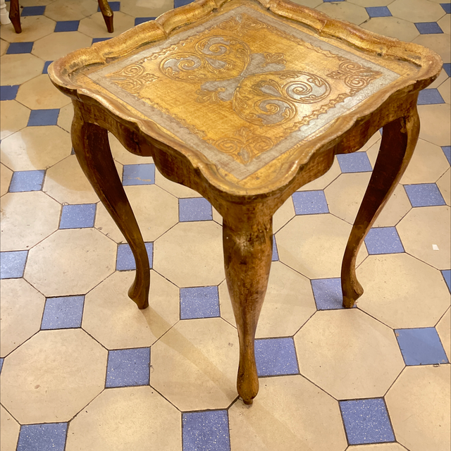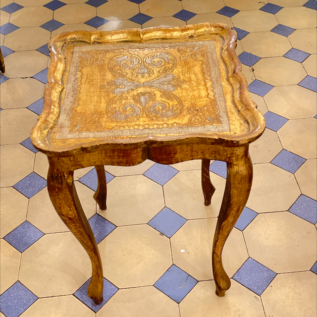 Florentiner Goldtisch Holztisch, Beistelltisch, Nachttisch handbemalt aus Italien, leichte Bauweise