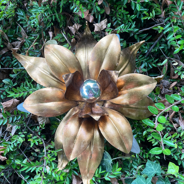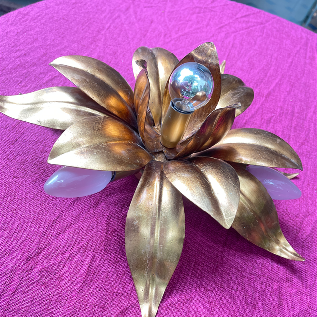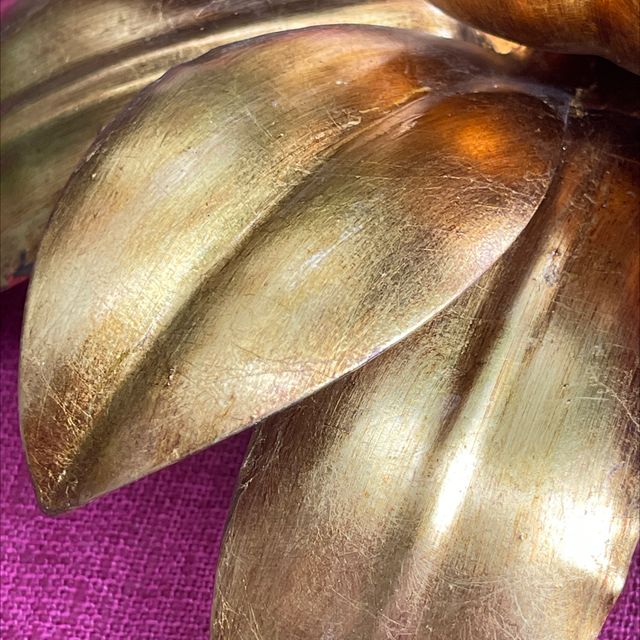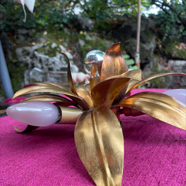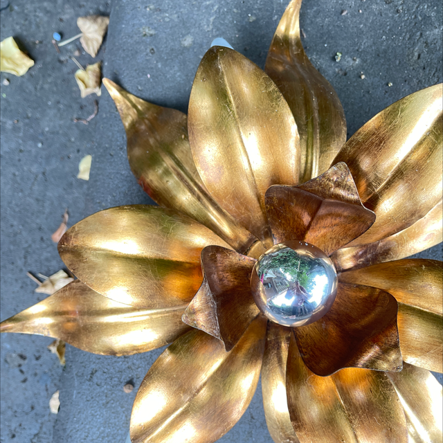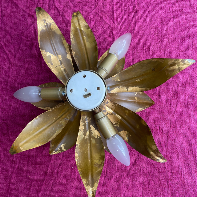 Handgeschmiedete Blattleuchte für die Decke oder als Wandleuchte. Florentiner Lampe mit schöner Vergoldung. 4-Flammig. Durchmesser: 40 cm, H:16 cm