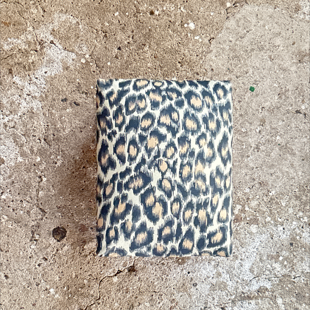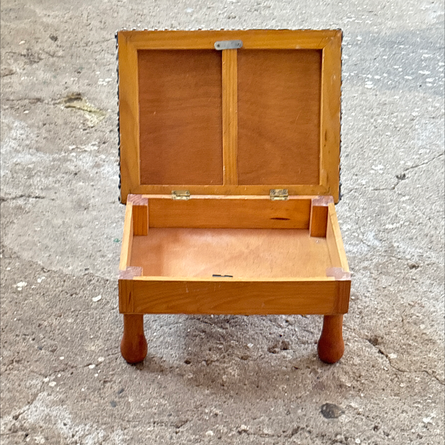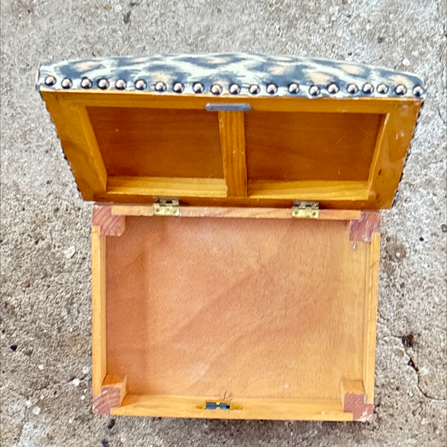 Fusshocker mit Leostoff bezogen, Holzcorpus und aufklappbar