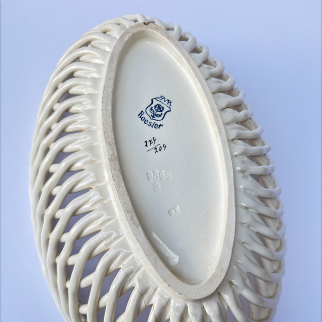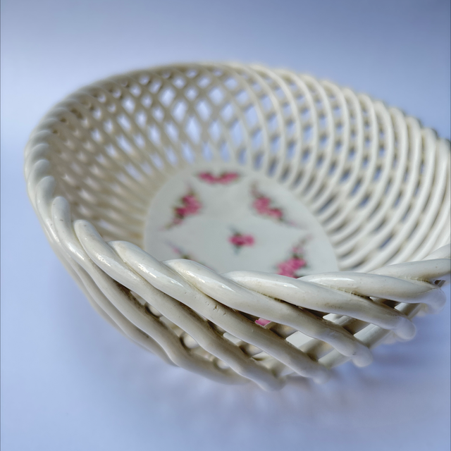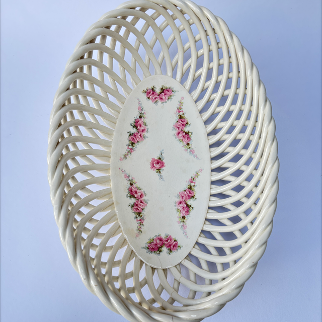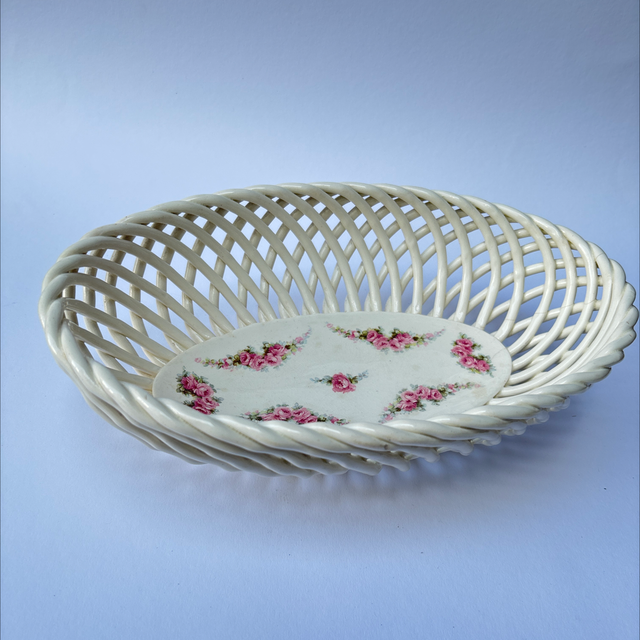Gitterkeramik Brotkorb mit Rosen von Roesler . B: 19 cm x 28 cm