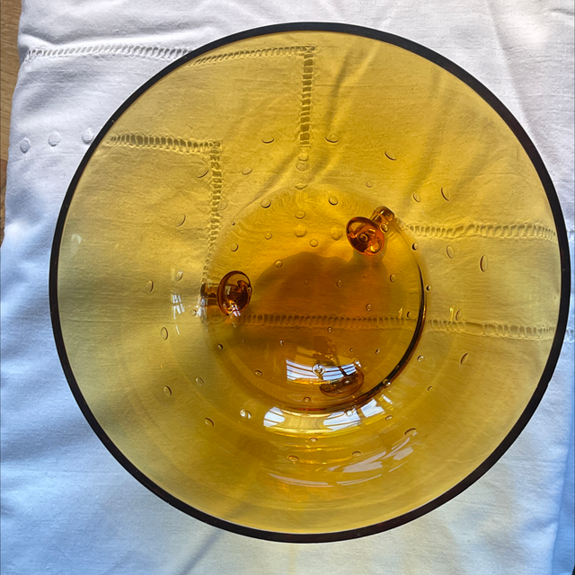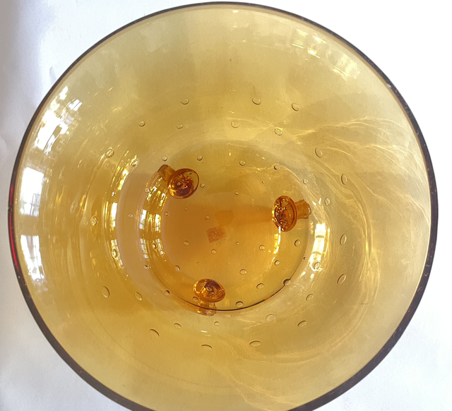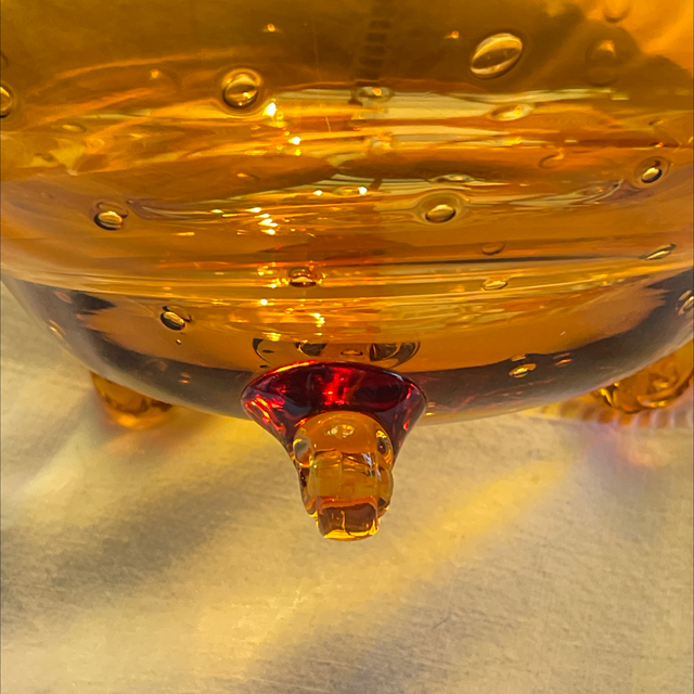 Glas Schale auf Füßen hangefertigt Bernsteinfarben