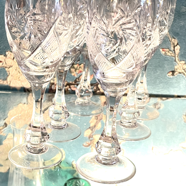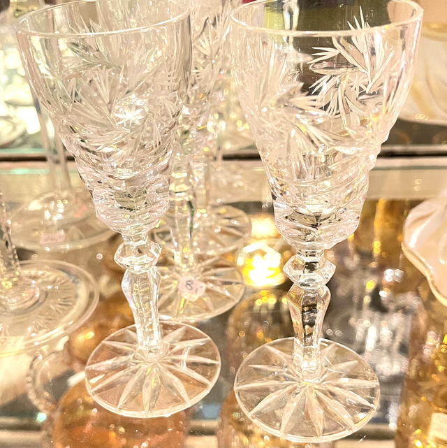 Antike Gläser, Grappa , Sherryglas, Likörglas mit Stern , handcut, Kristallglas. Preis gilt für 6 Srück