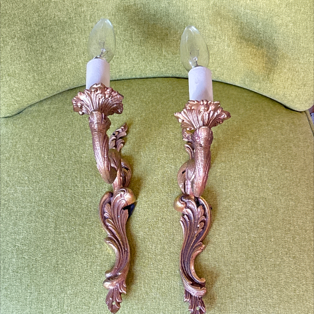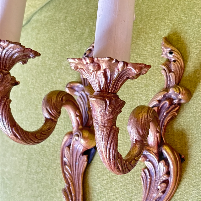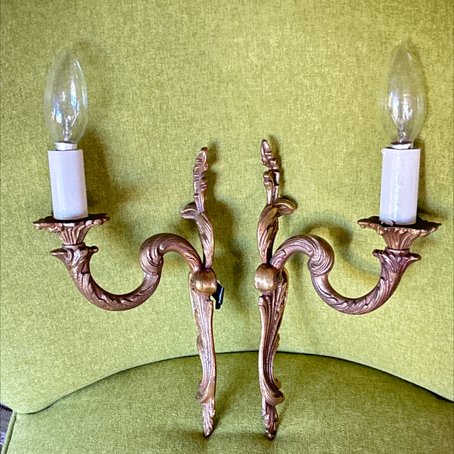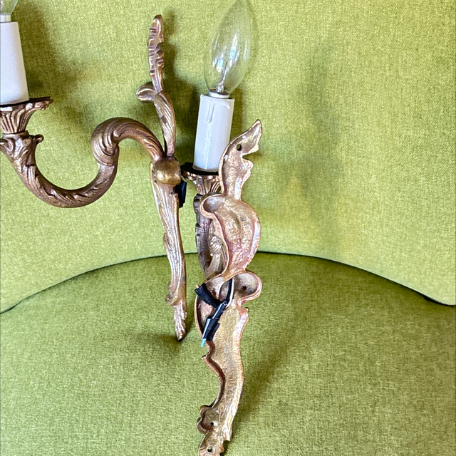 Wandleuchter im Barock Stil aus Messing 1-flammig