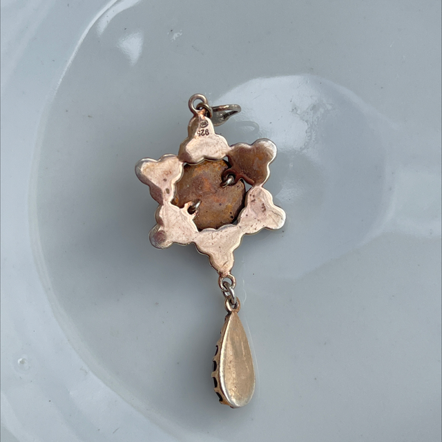 geschliffener Granat Anhänger silber Rosé vergoldet , antik
