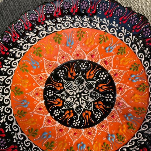 Gemalter türkischer Wandteller gross. Künstlerarbeit. Traditioneller Keramikteller