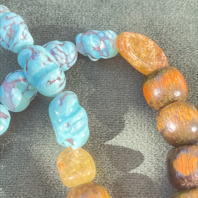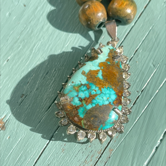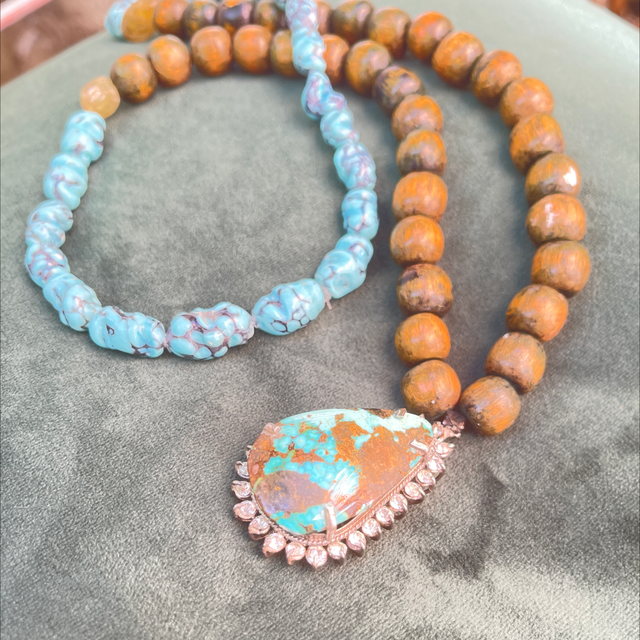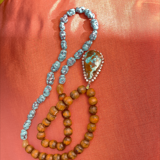 Hippie Kette Türkis echte Perlen/ Strassanhänger