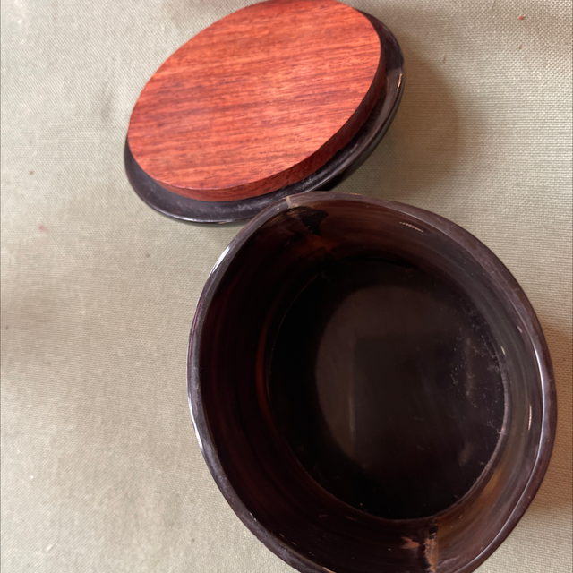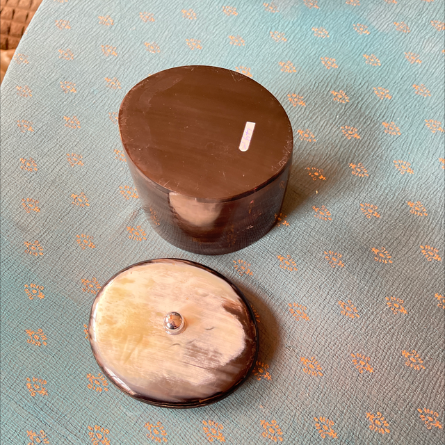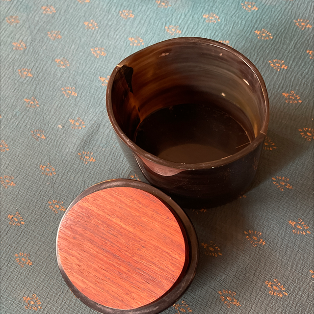 edle Dose aus Horn mit Deckel und der ist mit Holz versehen