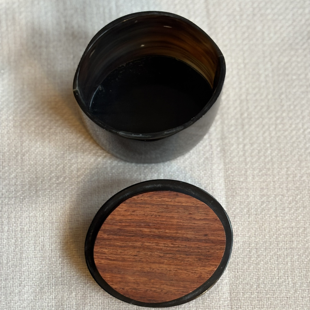 Horndose die innen mit Holz ausgekleidet ist