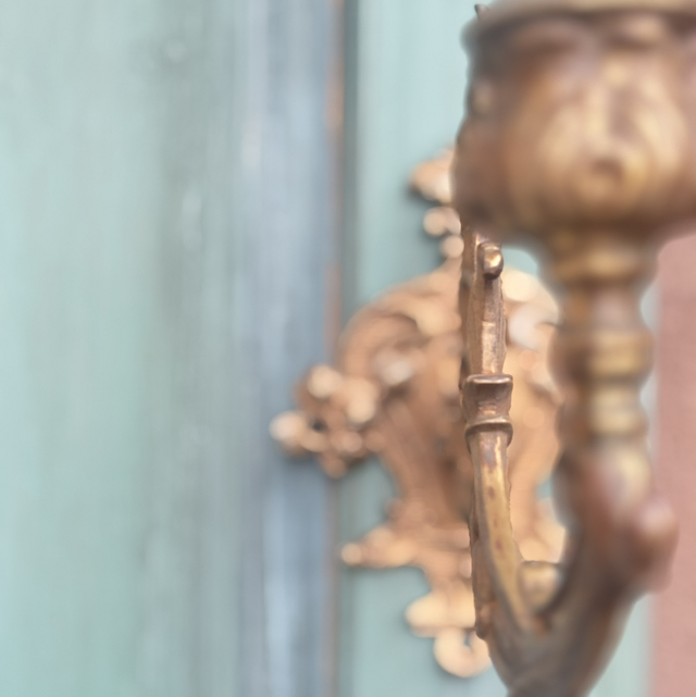 Jugendstil Kerzenhalter gold / Klavierleuchter
