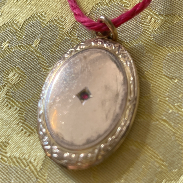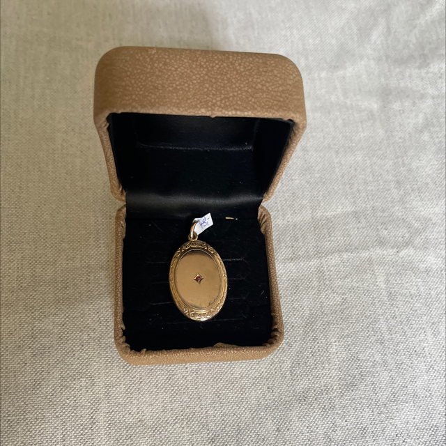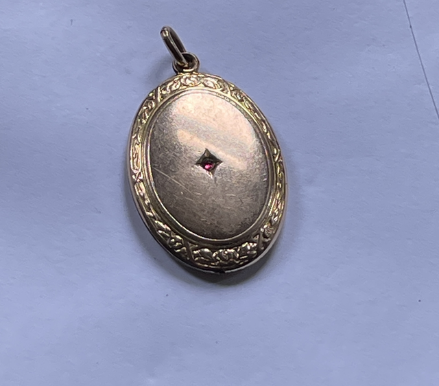 Antiker Kettenanhänger , nicht aufklappbar, mit kleinem Rubin.