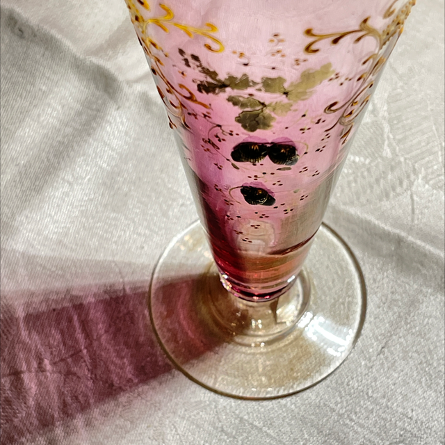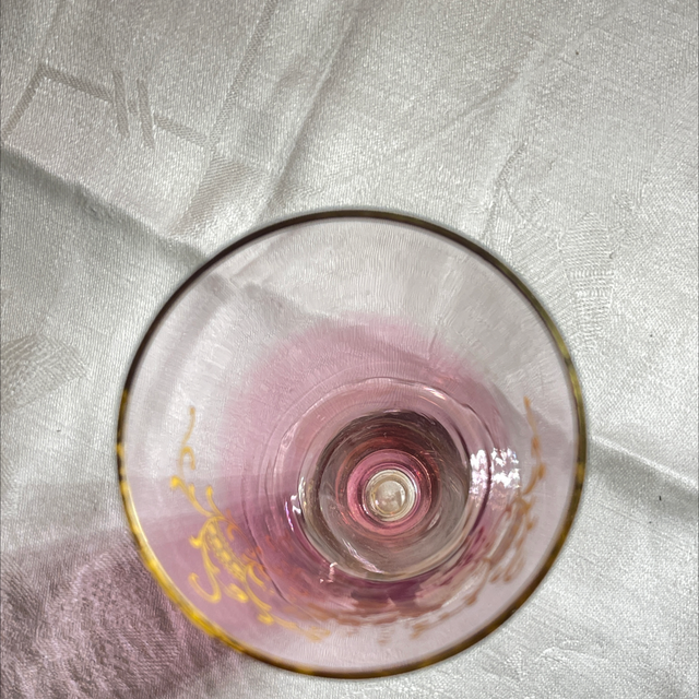 Antikes Moser Glas mundgeblasen rosé und gold. Champagnerglas.