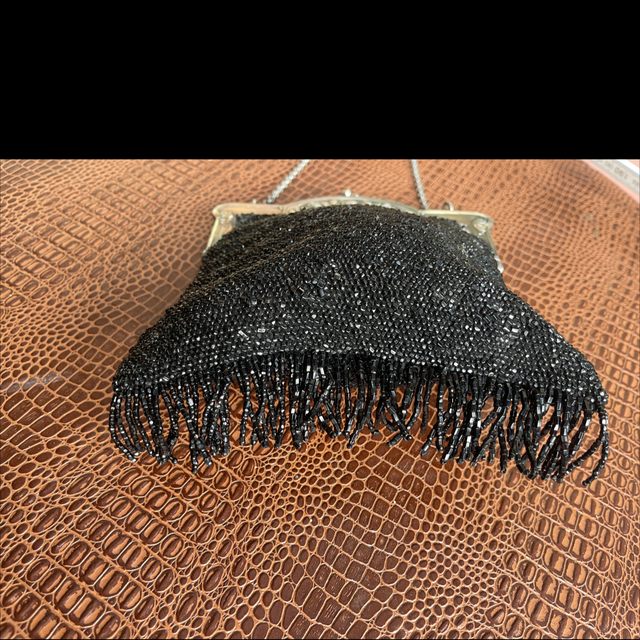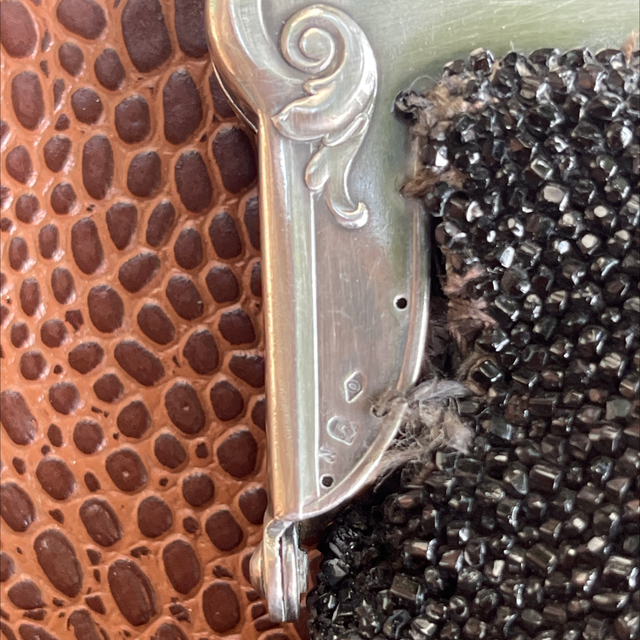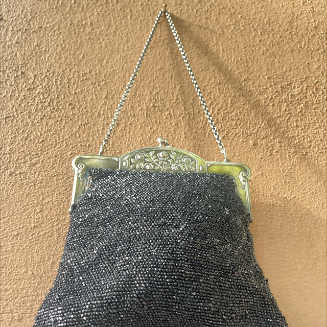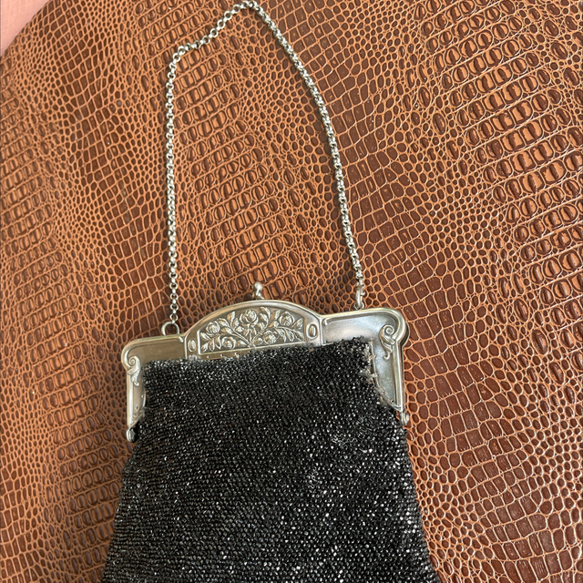 Jugendstil Tasche Abendtasche schwarze Perlen Silber gestempelt