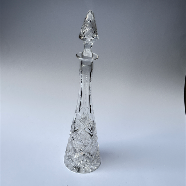 Karaffe antik Kristallglas mit Stöpsel, Sternenschliff