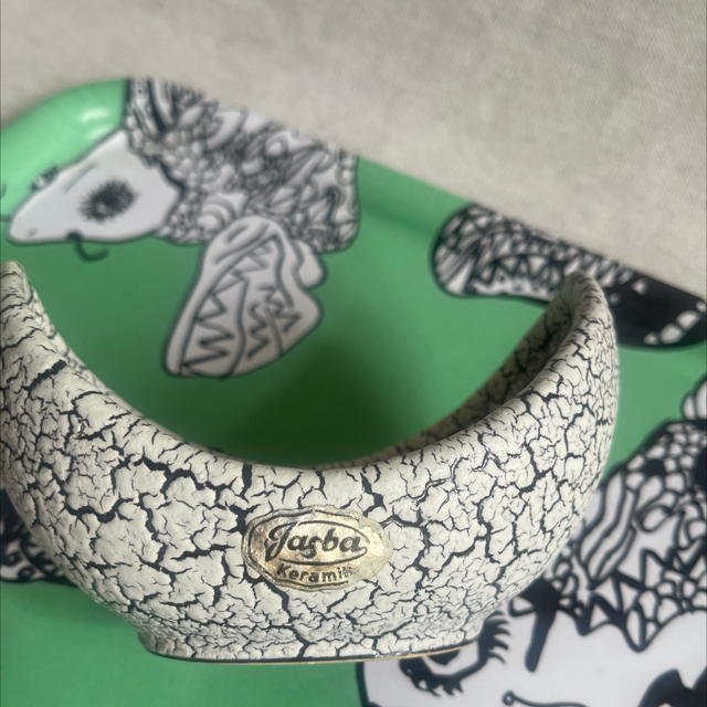 Keramik Schale craquelée schwarz / weiss vintage