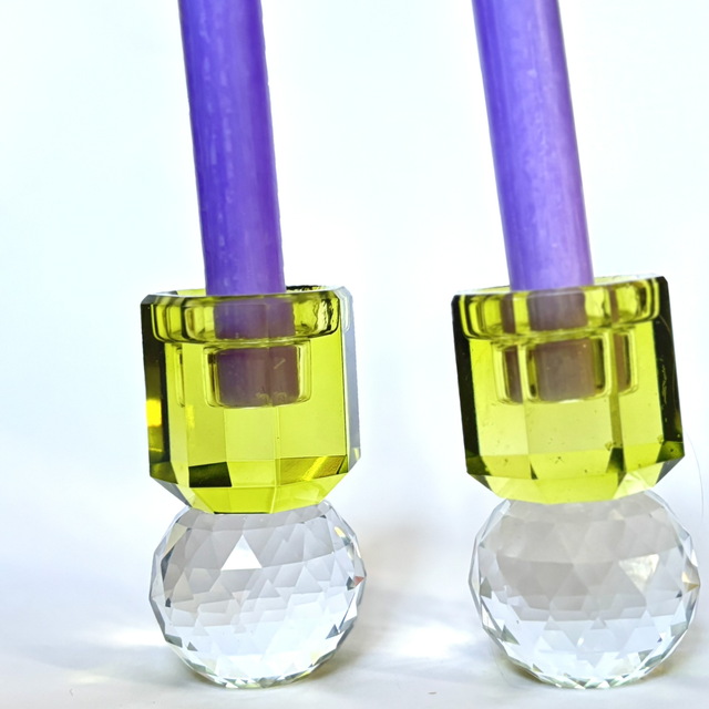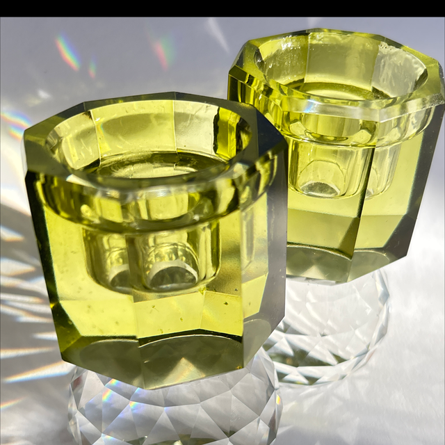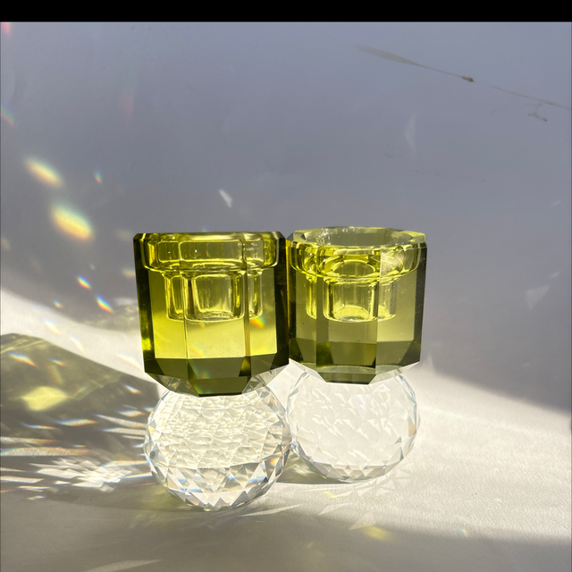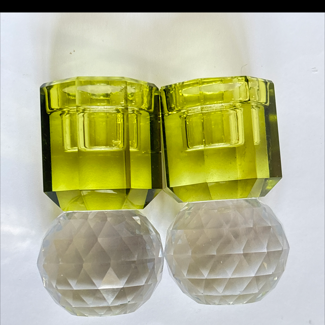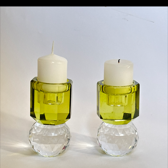 Kerzenleuchter Kugel Kristall / grün / klarsichtig / Set von 2 Kerzenhaltern