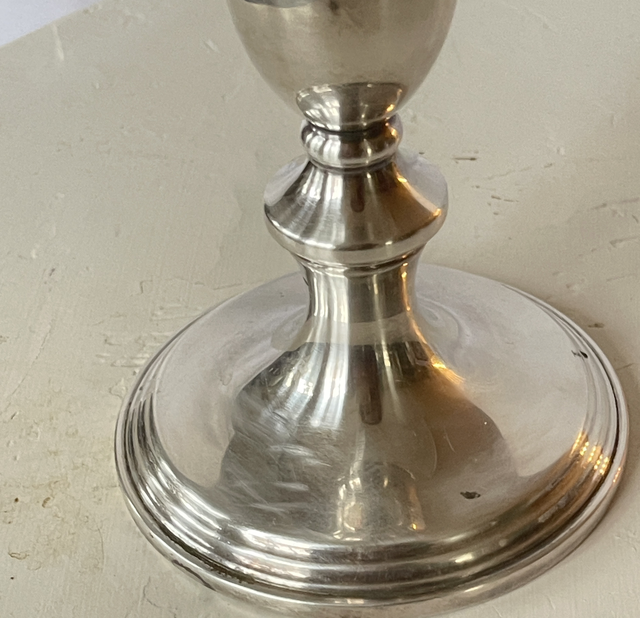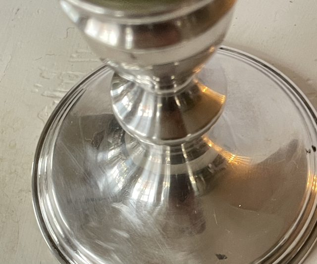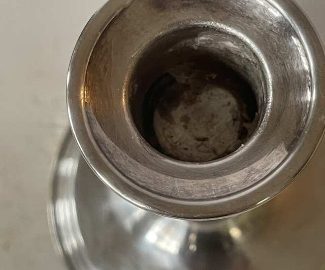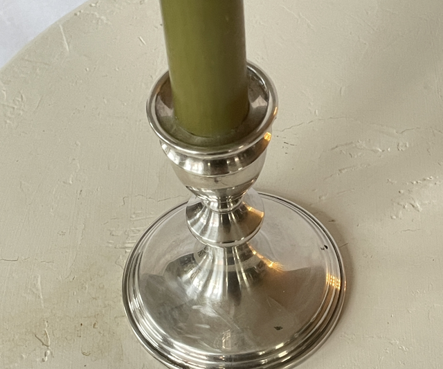 silberner Kerzenhalter aus England antik Messing versilbert