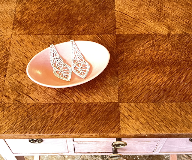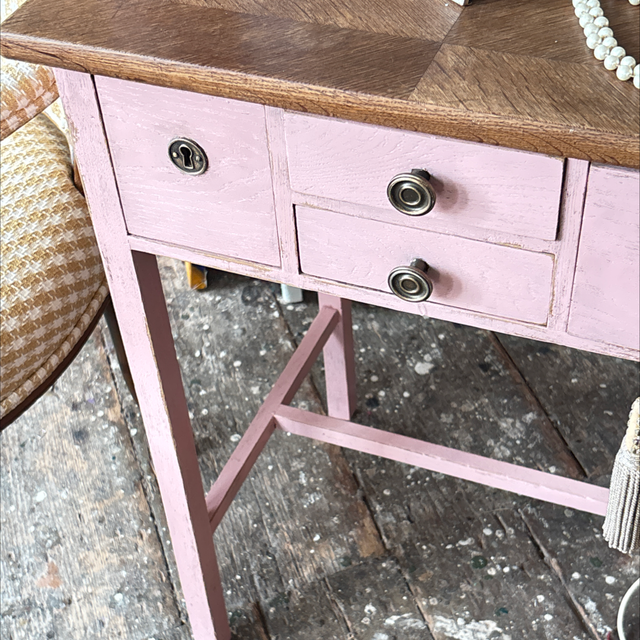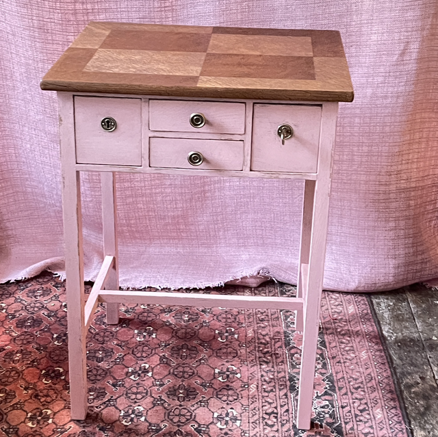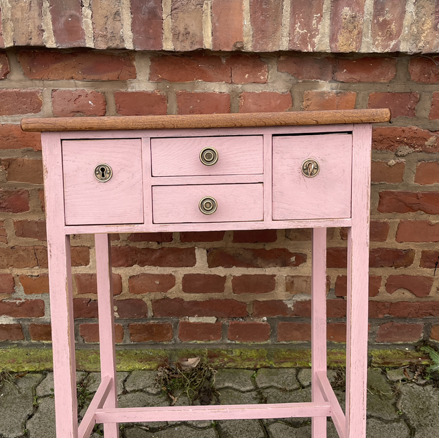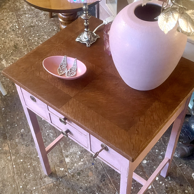 Art Déco Tisch Rosé, Eichenholz/ lackiert / Nähtisch/ Beistelltisch mit 4 Schubladen