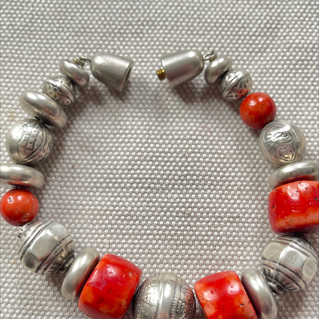 Korallen Armband mit Silberelementen