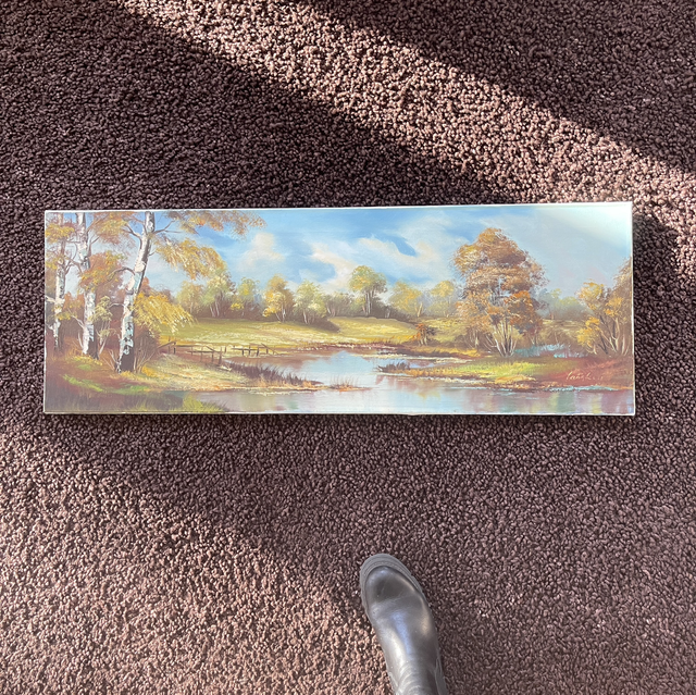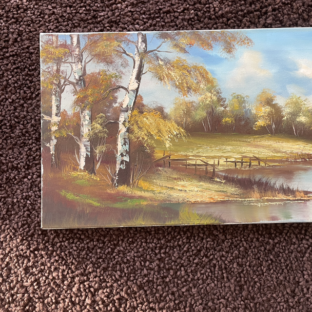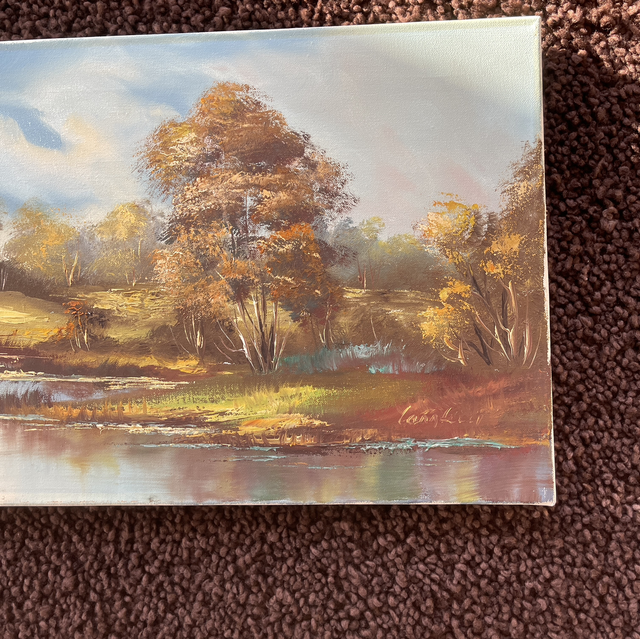 Kunstwerk Landschaft am See signiert Öl auf Leinwand