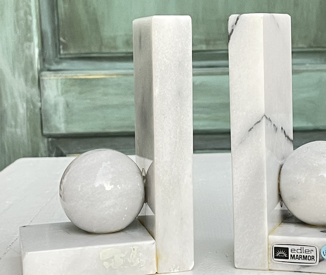 Marmor Buchstützen L- Form und Marmorkugel