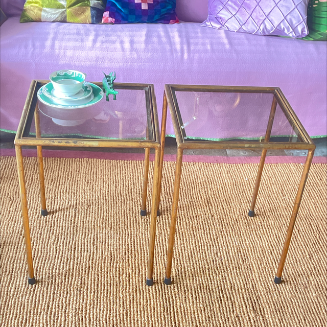 Gold Tisch mit getönter Glasscheibe