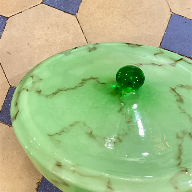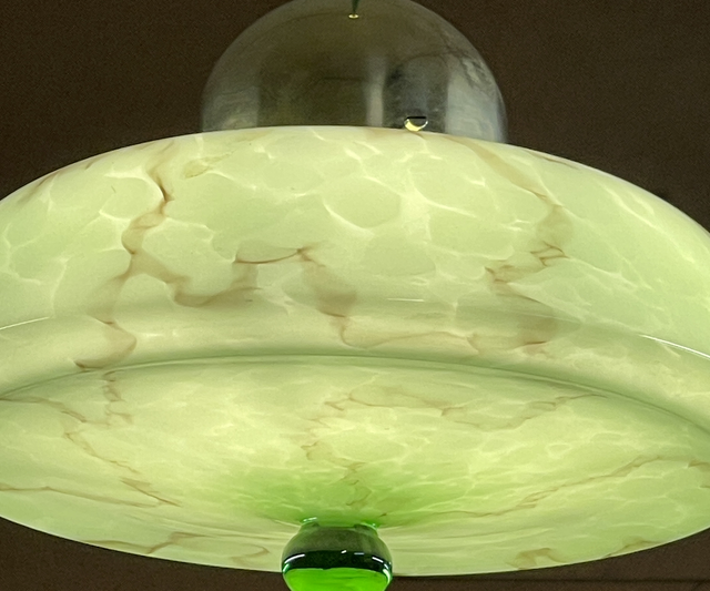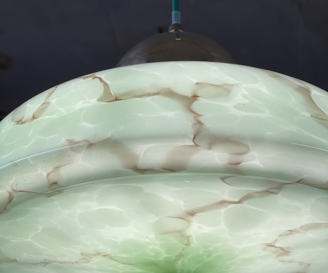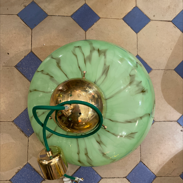 Mid-Century Art Déco grüne marmorisierte Glasleuchte Pendelleuchte von 1930