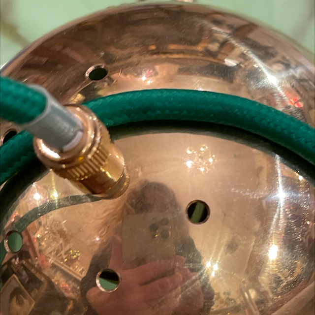 Glaskunst von 1930. Neu verkabelt mit Mit grünem Textilkabel und Messing montur. Neu verkabelt. Grüne Strickkabel
