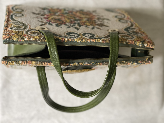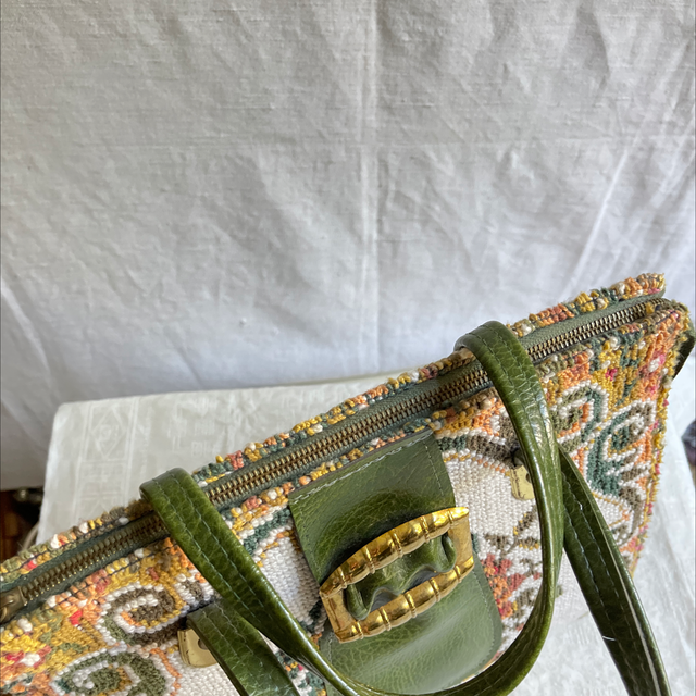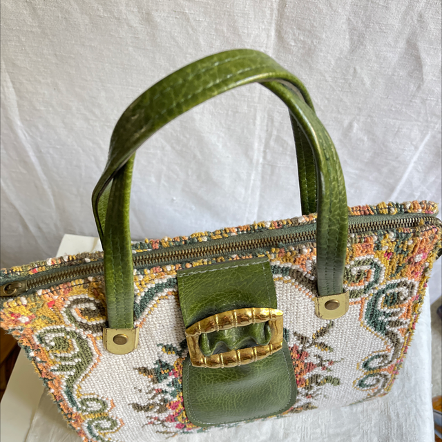 Brocante Handtasche/ Kellybag-style B: 30 cm, H: 40 cm Rarität/ Stickerei und Kunstleder mit Reißverschluss