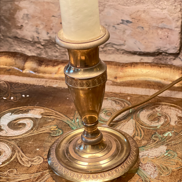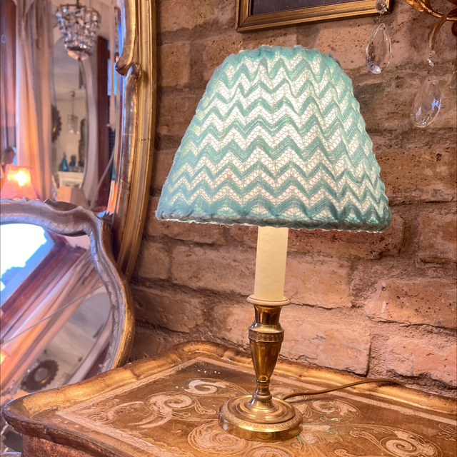 Hollywood regency Lampe original Vintage Messing mit Unikat Schirm Gesamthöhe : 33 cm , B: 18 cm