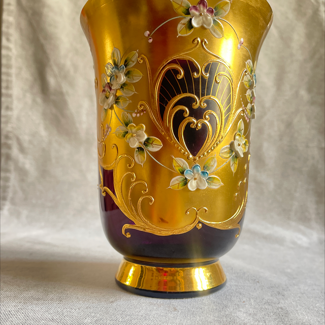 Rubinfarbene handgefertigte seltene Vase von Murano mit 24karat Gold belegt