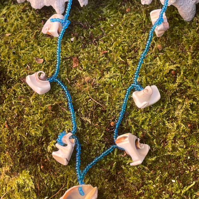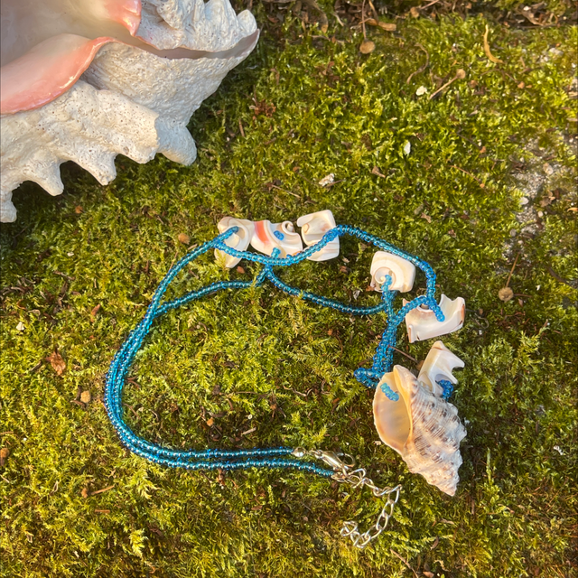 Muschelkette mit blauen Glasperlen