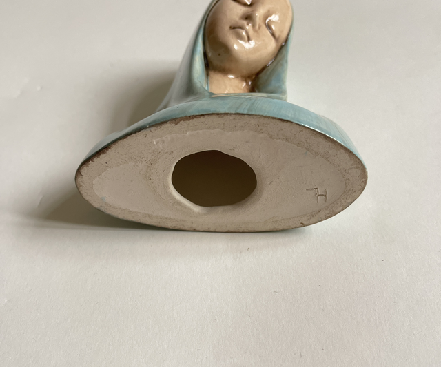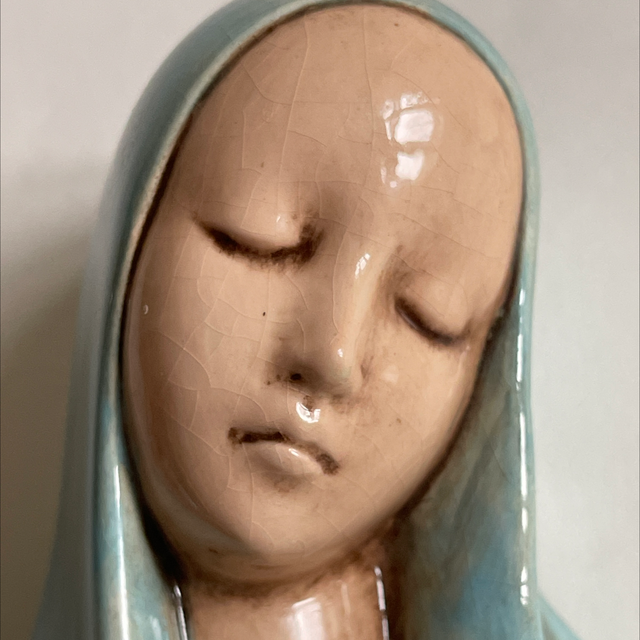 Madonna Mutter Gottes Keramik glasiert signiert blau